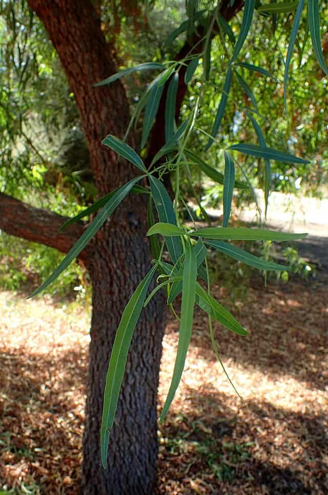 Seeds Rhus lancea (African sumac). Small to medium sized evergreen tree to 24′ tall; 24′ spread. Heat tolerant, little water. Hardy to 15°F. Native to Southern Africa. Approx. 1200 seeds per oz.